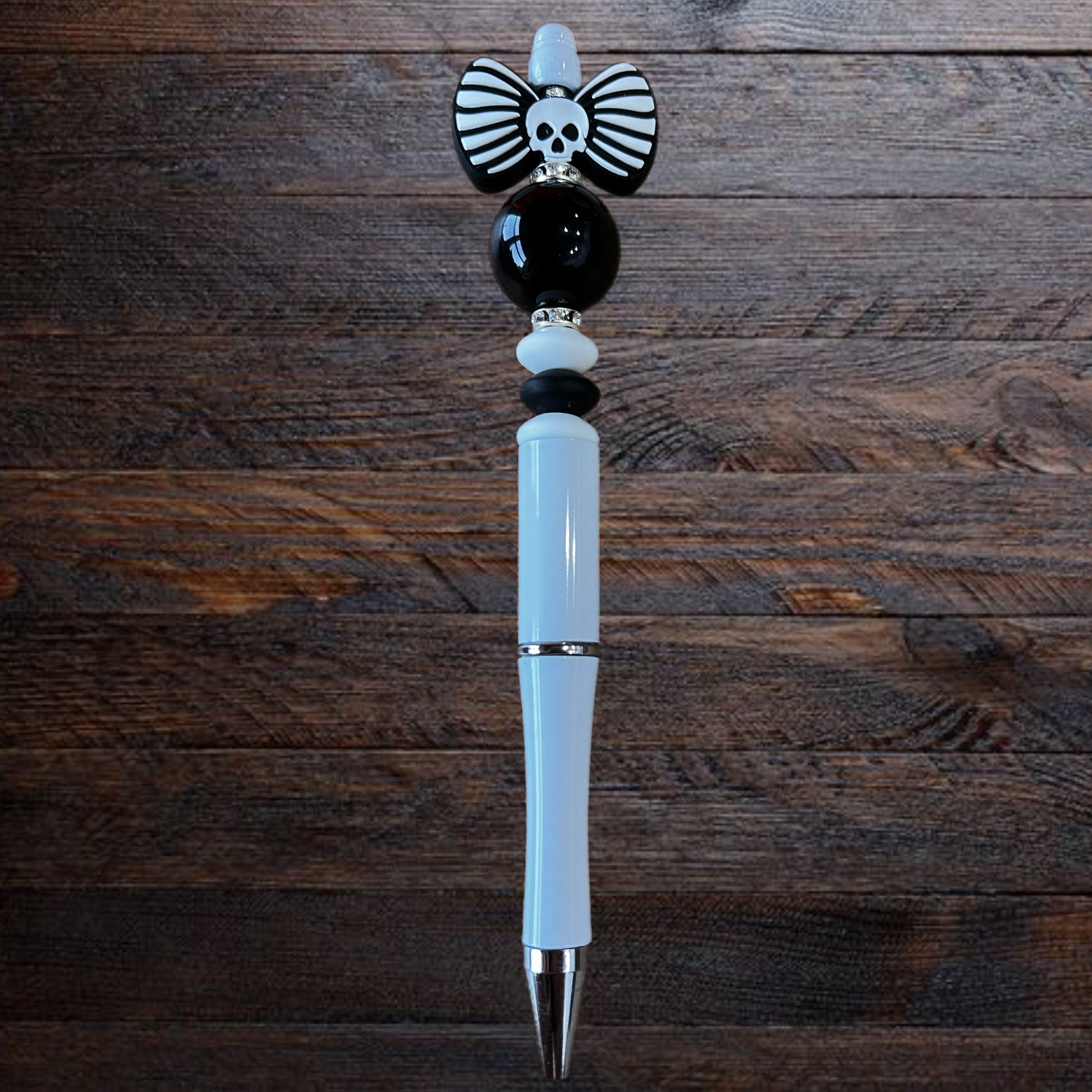 A bow with bones? That’s called multitasking, darling. This pen is giving classy goth vibes with just the right touch of spooky sass. Perfect for anyone who likes their stationery like their soul—dark, dramatic, and fabulous.