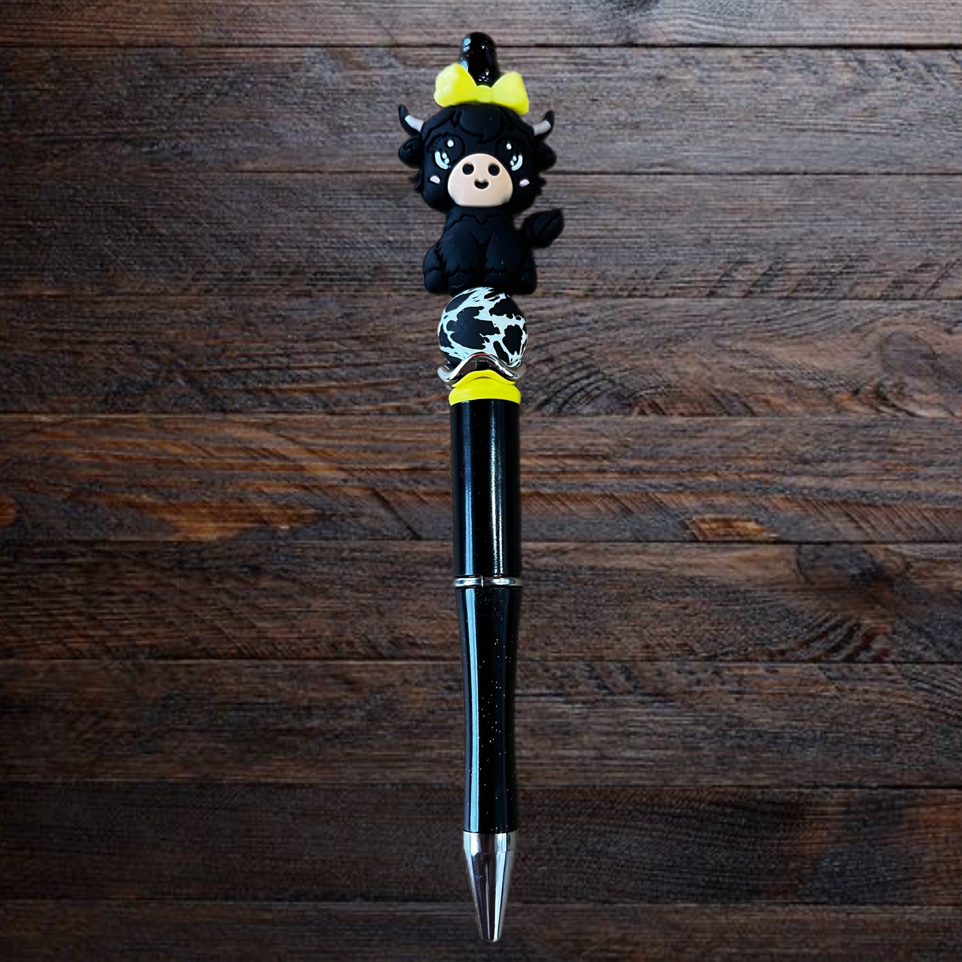 She’s serving farm chic with a side of sass. This black highland cow pen with her yellow bow and cow-print bead isn’t here to blend in—she’s here to moo-ve mountains (or at least your to-do list). It’s equal parts adorable and attitude, just like you on a Monday morning.