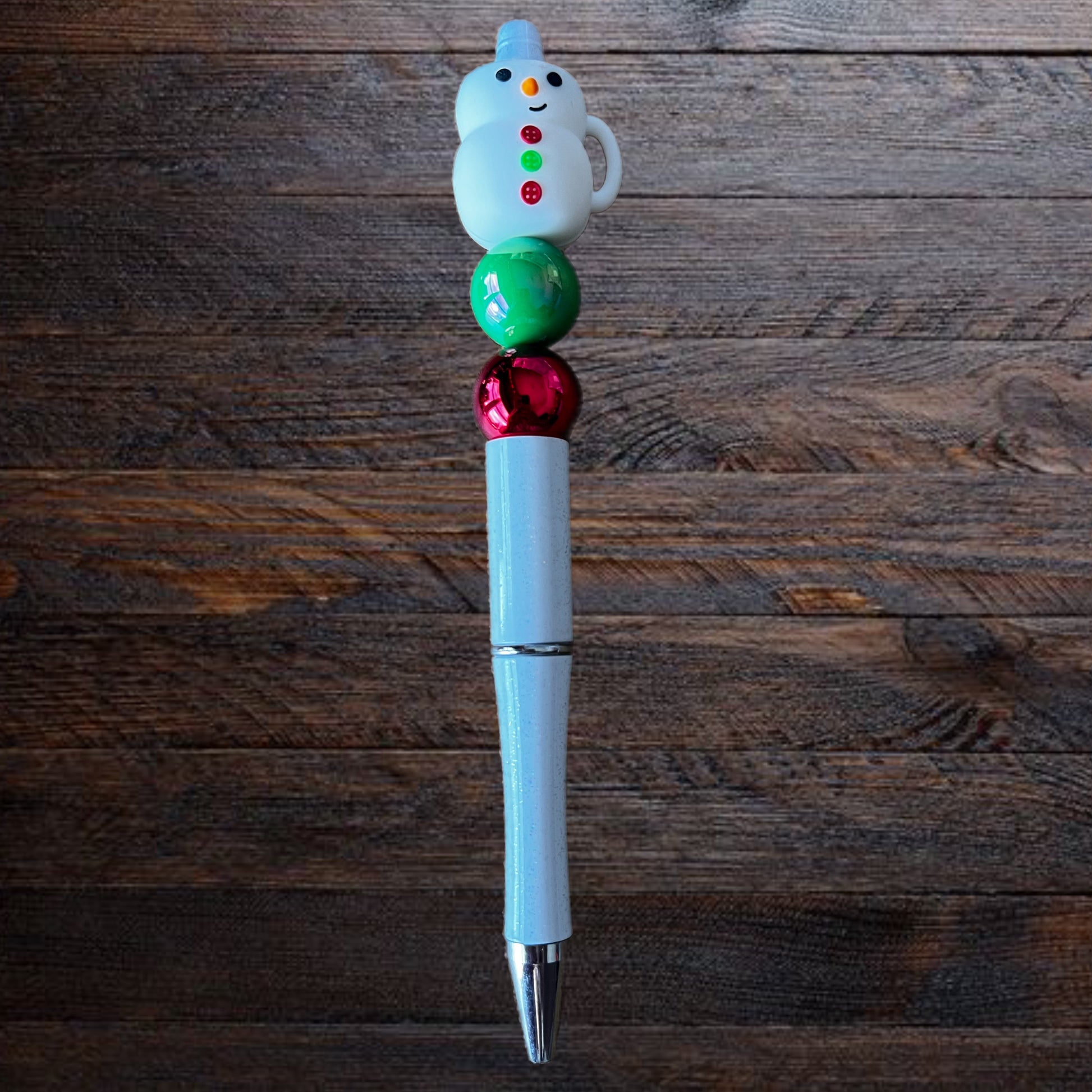 Cozy, cheerful, and full of winter charm — this pen is basically a warm hug in writing form. Featuring a smiling snowman mug focal, festive red and green accents, and a soft light blue pen base, it’s perfect for adding a little holiday joy to your desk.