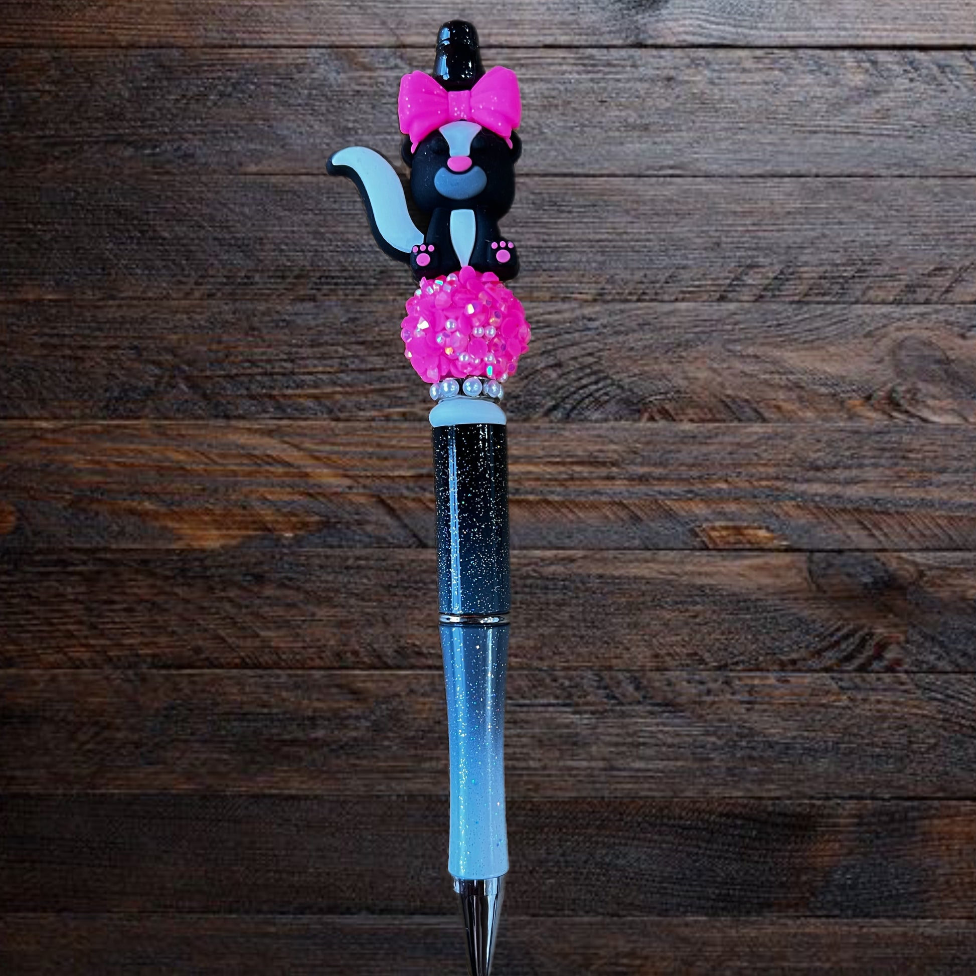 Who knew a skunk could serve looks this hard? With her hot pink bow and glittery beads, she’s not here to stink up the place—she’s here to slay it. Cute, sassy, and just a little wild, this pen will have everyone sniffing around asking where you scored it.