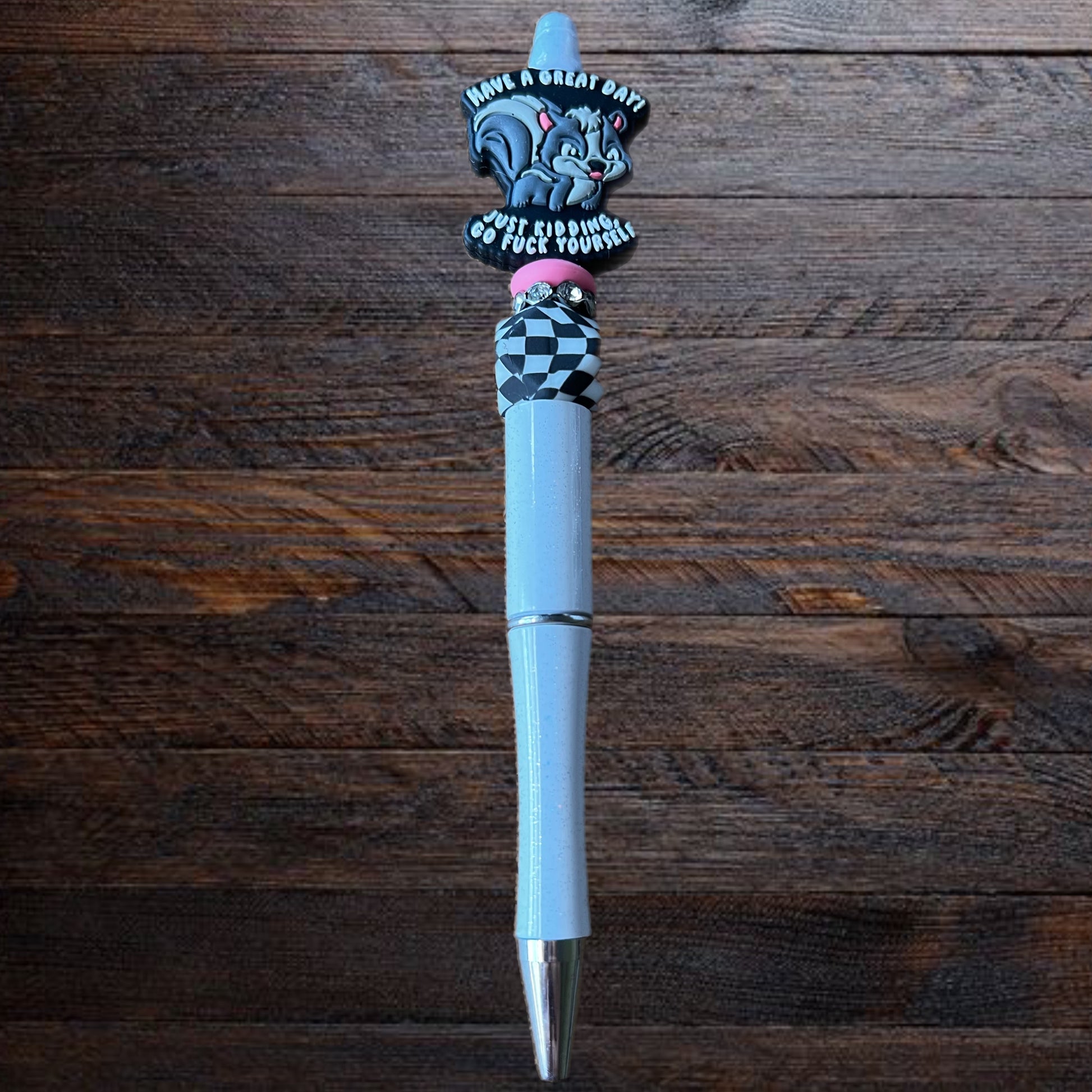 “Have a great day! …Just kidding, go f*ck yourself.” This pen is pure chaotic energy in the cutest package. Perfect for when you want to smile sweetly on the outside while letting everyone know exactly how you feel on the inside.