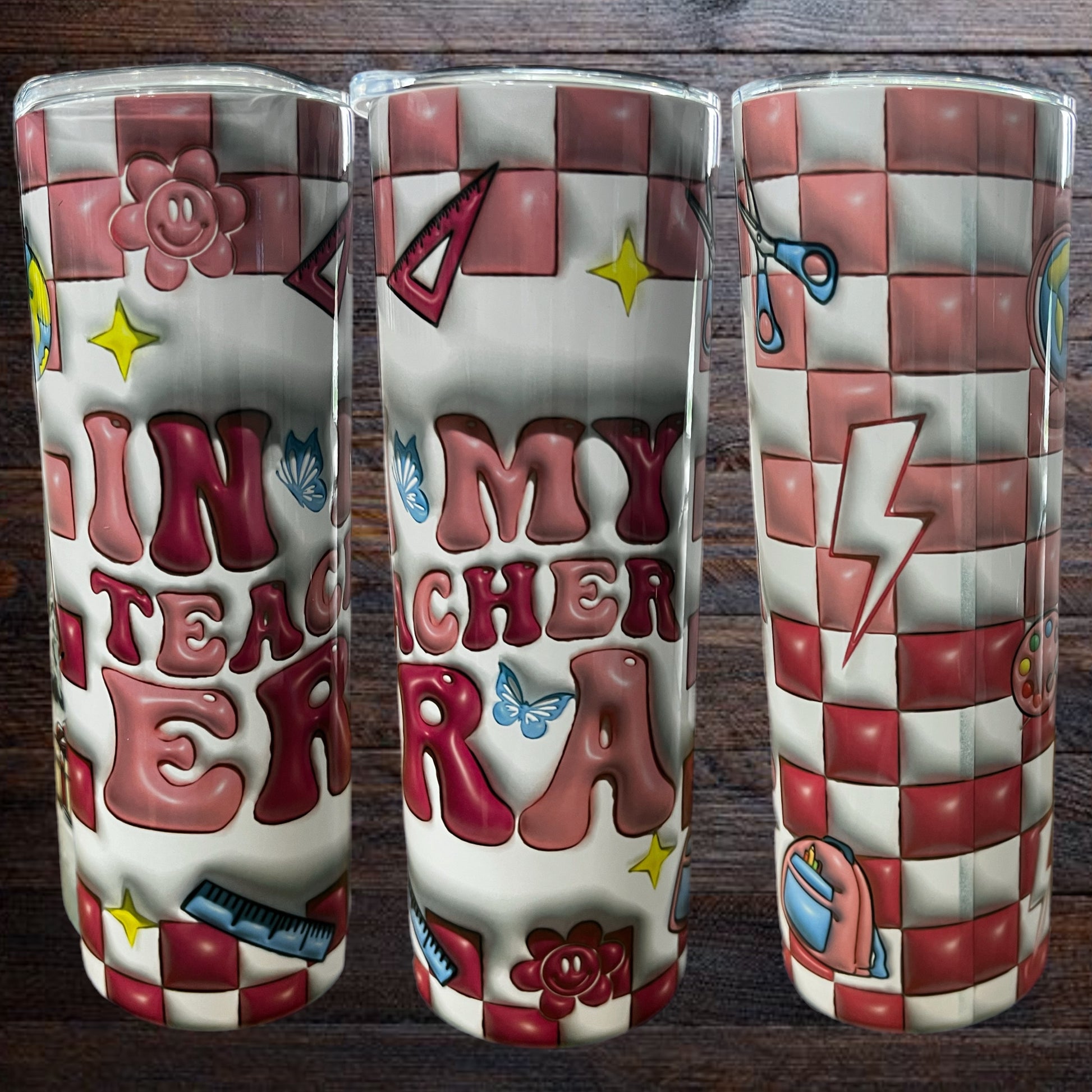 Channeling Taylor energy and classroom confidence, this In My Teacher Era tumbler is a must-have for every educator living their best life. With playful fonts, checkerboard patterns, and school-themed icons, it’s the perfect mix of trendy and teachable.